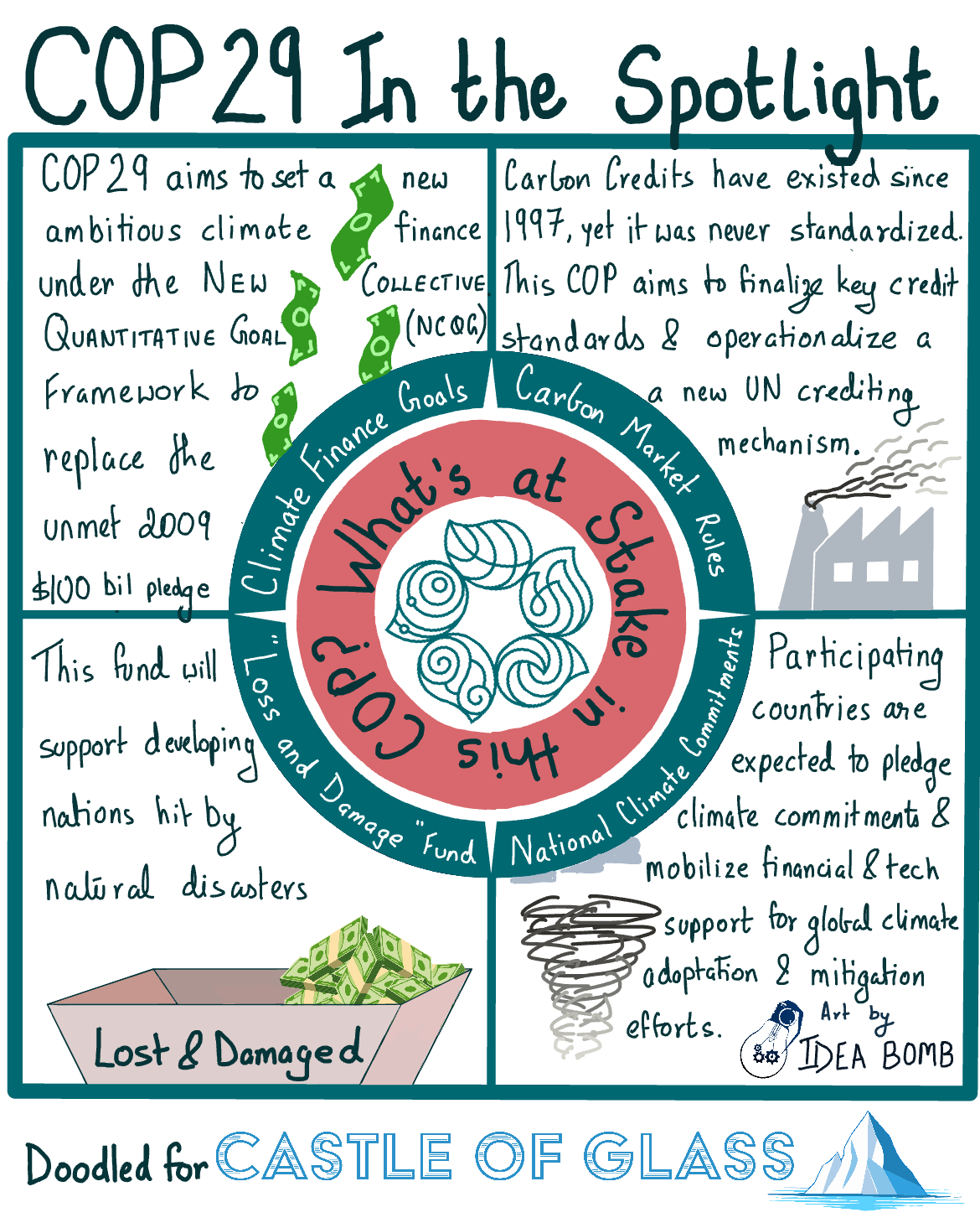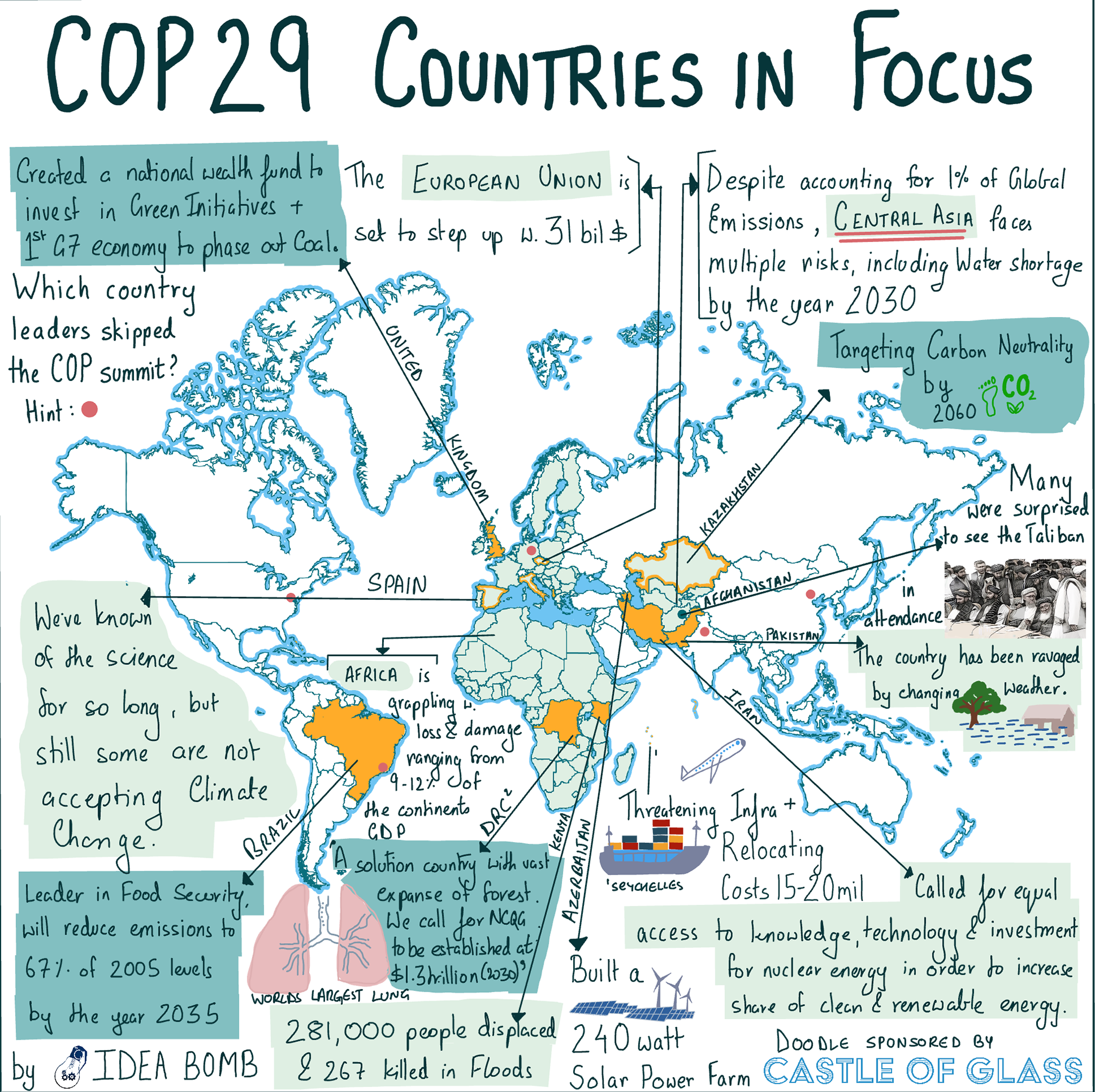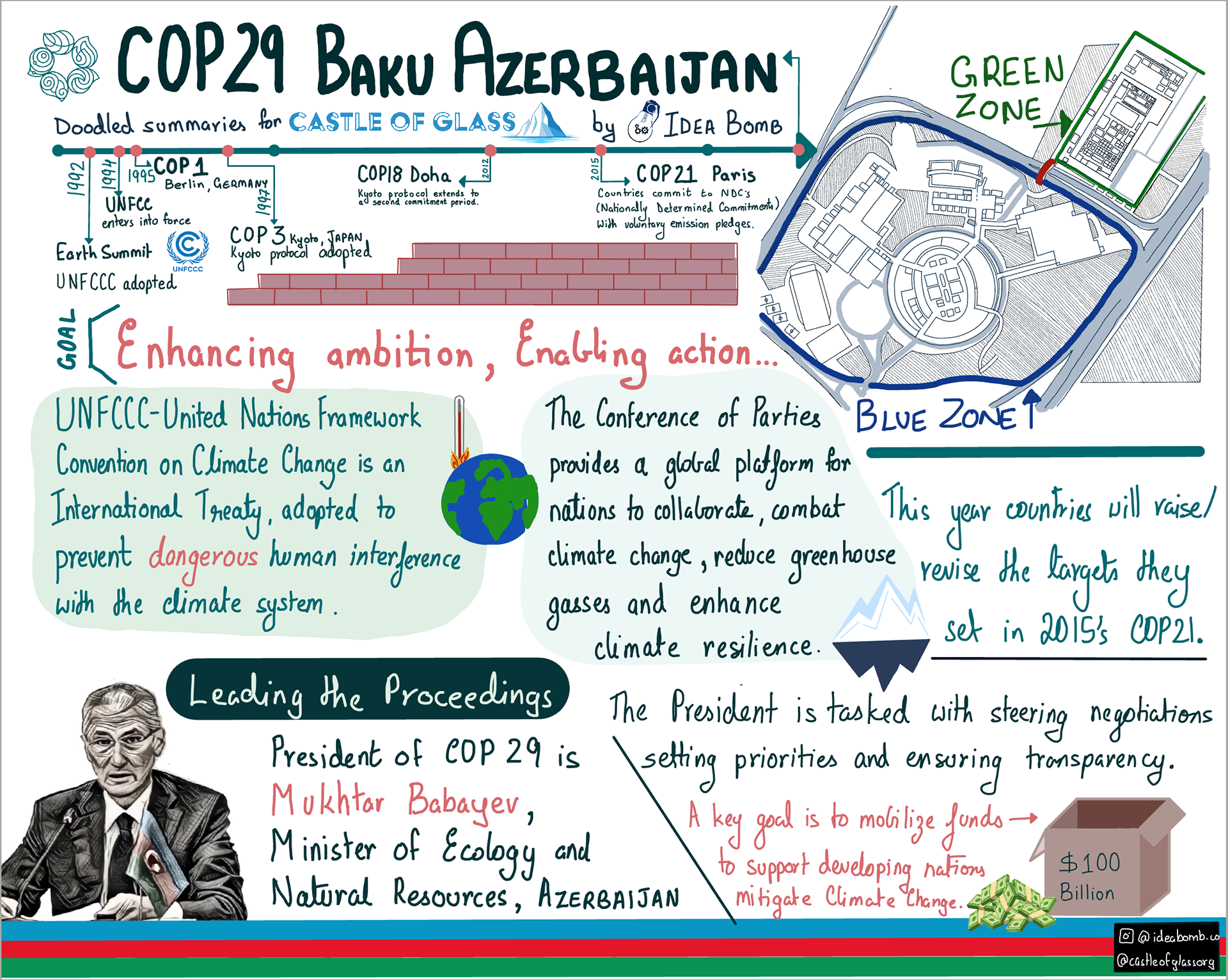 Curious about COP 29? Get all the highlights and learn about the 2024 conference of parties in Baku, Azerbaijan in our Doodled summaries, courtesy of Idea Bomb.
